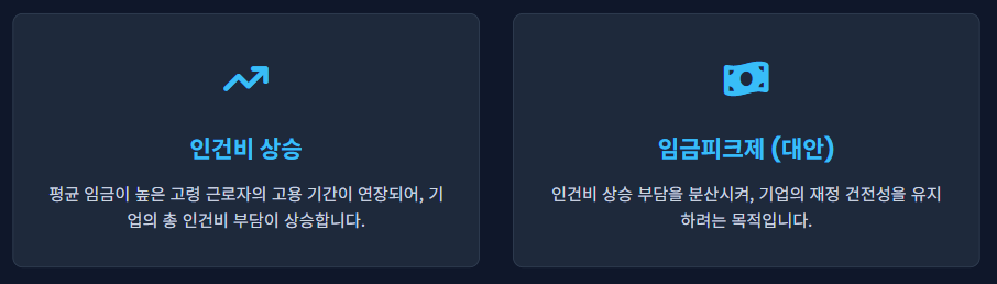 정년 연장과 임금피크제는 각각 다른 목적을 가지고 있지만, 기업의 인건비 부담과 고용 유연성 확보라는 교집합에서 강하게 연결됩니다.