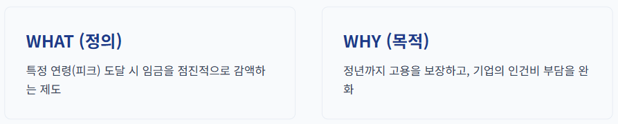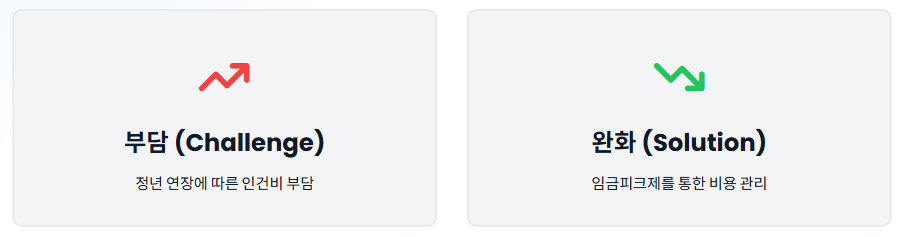 - 정년연장형: 정년을 연장(예: 60세→65세)하는 대신, 연장된 기간 동안 임금 감액.