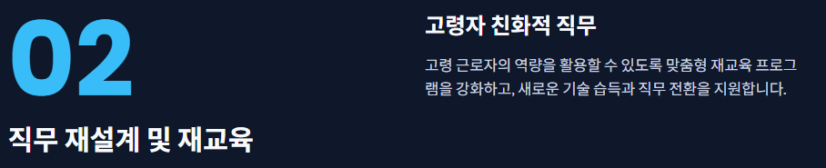 고령 근로자의 역량을 최대한 활용할 수 있도록 직무 재설계 및 맞춤형 재교육 프로그램을 강화하여, 새로운 기술 습득과 직무 전환을 지원해야 합니다.
