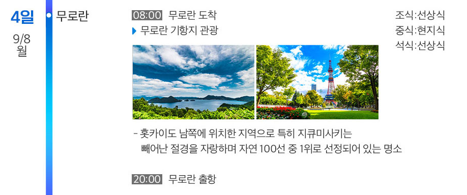 - [4일차] 9월 8일(월): 일본 무로란 (홋카이도 남서부의 아름다운 자연경관)