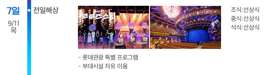 - [3일차] 9월 7일(일): 해상 (크루즈 시설과 프로그램 200% 즐기기)