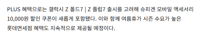 최신 스마트폰인 갤럭시 Z 폴드7과 Z 플립7 구매를 고려하고 계신 분들을 위한 특별한 혜택도 있습니다. T 멤버십 PLUS 혜택에는 갤럭시 Z 폴드7 | Z 플립7 출시를 기념하여 슈피겐 모바일 액세서리 10,000원 할인 쿠폰이 새롭게 포함되었습니다.