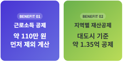 거주 지역에 따라 대도시(약 1.35억), 중소도시, 농어촌별로 재산에서 기본적으로 일정 금액을 공제해 줍니다. 따라서 수도권에 집 한 채가 있어도 수급이 가능한 경우가 많습니다.