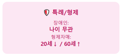 - 형제자매: 만 20세 이하 또는 만 60세 이상