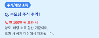 A: 양도소득금액이나 배당소득이 연 100만 원을 초과한다면 인적공제 대상에서 제외됩니다. - Q: 따로 사는 시부모님도 공제되나요?