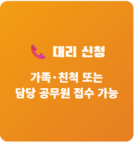 📞 대리 신청: 거동이 불편하신 분들은 가족, 친척 또는 담당 공무원이 대리 신청할 수 있습니다.