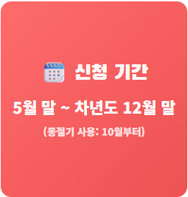 🗓️ 신청 기간: 매년 5월 말부터 다음 해 12월 말까지 (동절기 사용은 10월부터 가능)