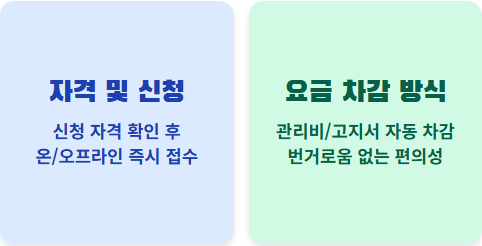 | 사용 방식 | 고지서에서 매달 자동 차감 | 에너지 판매처에서 직접 결제 |