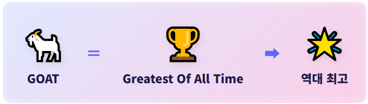 GOAT는 영어 문장의 앞 글자를 결합한 약어로, 다음과 같은 의미를 담고 있습니다.