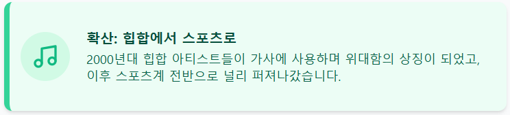 이후 2000년대 힙합 아티스트들이 자신의 위대함을 강조하기 위해 이 용어를 가사에 사용하면서 스포츠계 전반으로 퍼져나갔습니다.