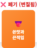 - 맛이 쓰고 끈적함이 느껴진다.