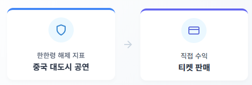 K-POP 아티스트들의 중국 대도시 공연 허가는 한한령 해제의 가장 상징적인 지표입니다. 오프라인 공연은 단순한 티켓 판매를 넘어 **MD 상품, 현지 팬클럽 운영, 브랜드 광고** 등 연쇄적인 경제 효과를 유발합니다.