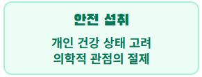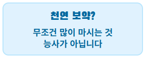 | 섭취 방식 | 수시로 음용 가능 | 소량씩 나누어 음용 |