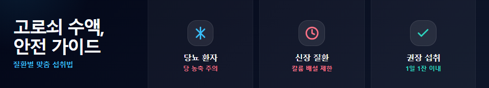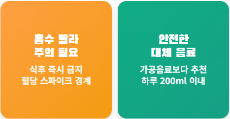 - 🥤 대체 음료 활용: 시중의 가공 음료보다는 훨씬 훌륭한 대안입니다. 다만, 하루 한두 잔(200ml) 내외로 제한하는 것이 안전합니다.