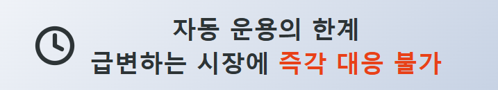 - 실시간 대응 불가: 자동 운용 특성상, 급변하는 시장 상황에 가입자가 즉각적으로 개입하기 어렵습니다.