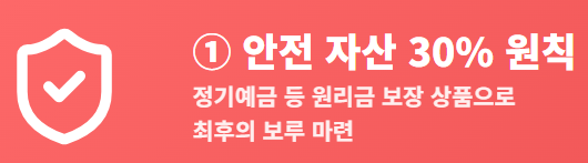 전체 자산의 일정 비중은 반드시 정기예금 등 원리금 보장 상품에 묶어두어 최후의 보루를 마련합니다.