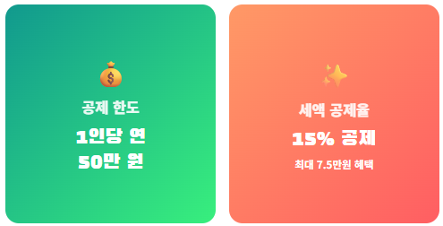 - 공제율: 15% 세액공제 (최대 7.5만 원 혜택)
