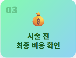 - 시술이 시작되면 취소가 어려우므로 상담 시 최종 비용을 꼭 확인하세요.
