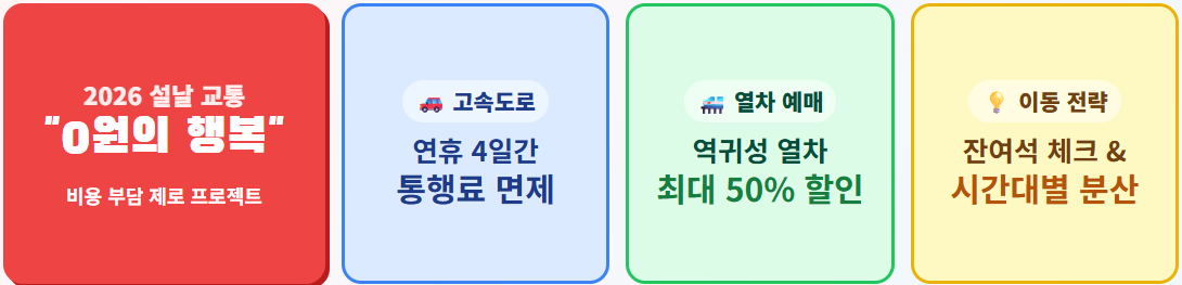 2026 설날 고속도로 무료 이용 시간 및 기차표 잔여석 예매 꿀팁