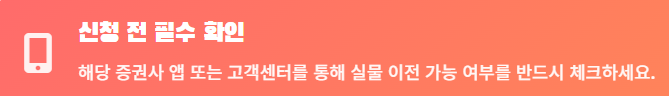 실물 이전을 신청하기 전, 반드시 해당 증권사 고객센터나 앱을 통해 '내가 보유한 상품이 이전 가능한지'를 한 번 더 체크하세요. 비상장 주식이나 특수 펀드는 이전이 제한될 수 있습니다.