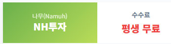 | NH투자증권 | 평생 무료(이벤트) | 투자 진단 리포트 제공 | 나무(Namuh) 브랜드 접근성 |