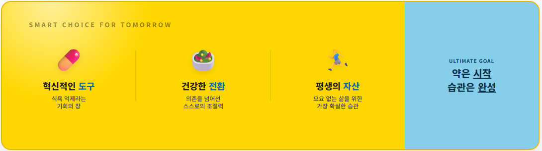 비만 치료제는 분명 혁명적인 도구입니다. 하지만 약에만 의존하기보다는, 약이 주는 '식욕 억제'라는 기회를 활용해 평생 갈 수 있는 건강한 습관을 만드는 것이 최종 목표가 되어야 합니다.