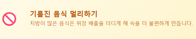 지방이 많은 음식은 위장 배출 시간을 더 늦춰 구토감을 악화시킵니다.