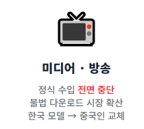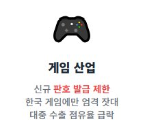 2. 게임 산업 (판호 발급 제한): 중국 내 게임 서비스를 위한 통행증인 '판호' 발급이 한국 게임에만 유독 엄격하게 적용되었습니다. 이로 인해 한국 게임 산업의 대중국 수출 점유율은 급격히 하락했습니다.