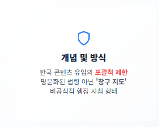 한한령(限韓令)이란 '한국 콘텐츠 및 문화 유입에 대한 포괄적 제한 조치'를 뜻합니다. 이는 중국 국가광전총국(광매체 관리 당국)의 명문화된 법령이 아닌, 이른바 '창구 지도'라는 비공식적 행정 지침 형태로 시행되었습니다. 이러한 비공식성은 국제 무역 기구(WTO) 등의 제재를 피하기 위한 중국 특유의 전략적 모호성에서 기인합니다.