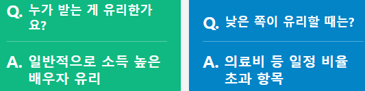A. 일반적으로는 소득이 높은 배우자가 받는 것이 유리하지만, 의료비처럼 총급여의 일정 비율을 넘어야 하는 항목은 낮은 쪽이 유리할 수도 있습니다.