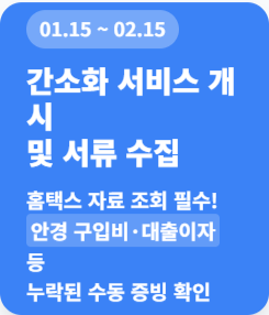 - 1월 15일 ~ 2월 15일: 간소화 서비스 개시 및 서류 수집