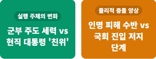 - 실행의 주체: 과거에는 군부가 주도했으나, 이번에는 현직 대통령이 직접 주도한 '친위 쿠데타'적 성격이 강합니다.